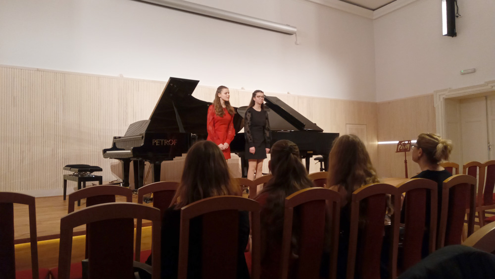 Úplně upřímně? Neznám větší trémistku než jsem já. Ze všeho se strachuji i týdny dopředu. A musím říct, že doteď jsem na to úplné řešení nenašla. Ale pár triků mám. Například když vím, že na koncertě hraji až na konci, osvědčilo se mi odejít a vrátit se až ve chvíli, kdy je za pár čísel řada na mě. Než se stihnu vzpamatovat, už mě volají ke klavíru a není čas na stresování. A ještě jednu věc bych ráda poradila mladším spolužákům. Když už sedíte za klavírem před velkým publikem, nesnažte se myslet na to, co budete hrát za minutu, soustřeďte se hlavně na to, co hrajete v ten daný moment a co na to navazuje. Jinak je velká šance, že se v tom zamotáte.